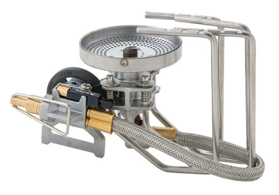 รุ่น ST-330เตาแบบแยกหัวเตาจากกระป๋อง (Remote stove) ใช้เชื้อเพลิงกระป๋องยาว พร้อมไมโครเรกูเลเตอร์ ขนาดกะทัดรัด หัวเตาทรงกะละมัง/กรวย (suri-bachi) ทนลมดีเยี่ยม และขาตั้งภาชนะ 4 ขาเกาะพื้นได้มั่นคง จ่ายไฟเสถียร ไม่แผ่วง่ายจากแรงดันในกระป๋องที่ลดลงระหว่างใช้งานต่อเนื่องหรือในอากาศเย็น พับเก็บกะทัดรัด สเปกผลิตภัณฑ์